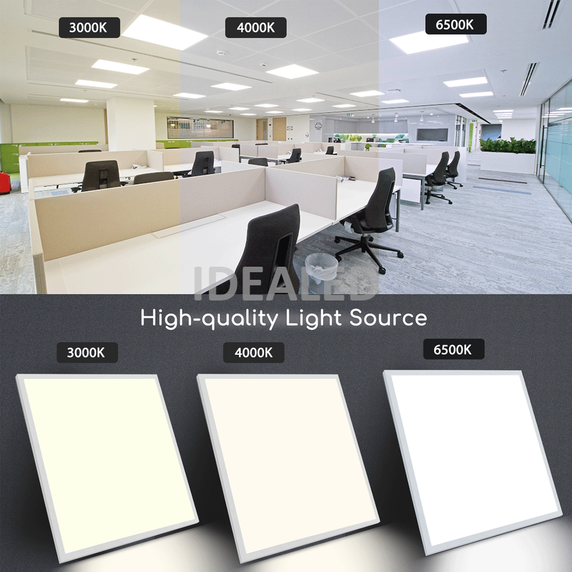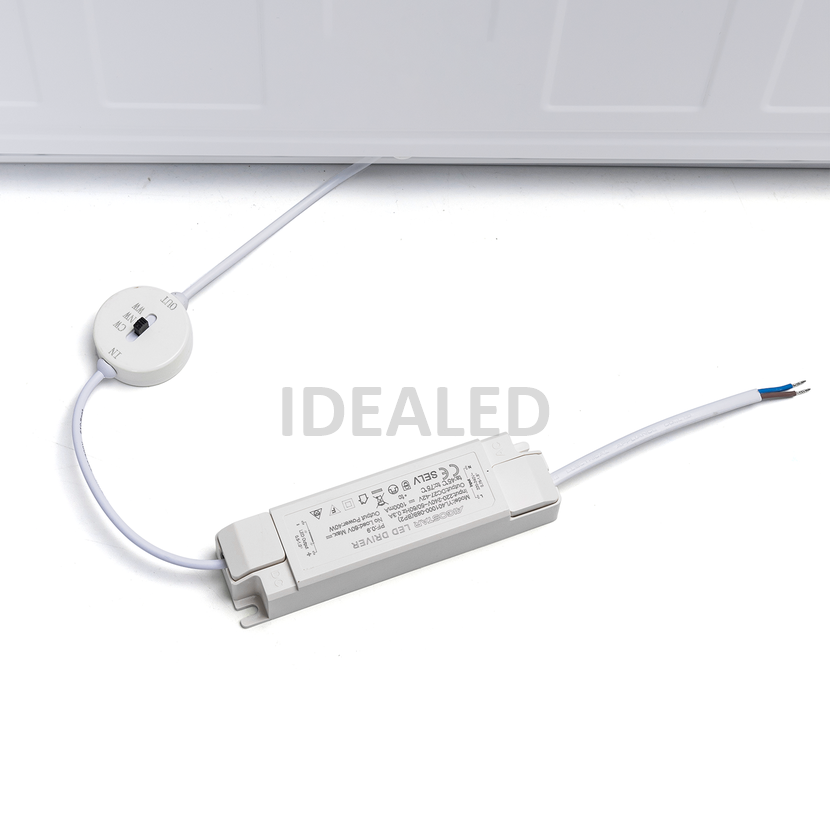 LED back-lit panel 1200x300 s přepínáním barvy světla přímo na svítidle (CCT change), bílý rám, výkon 40W, světelný tok 5200 lm, barva světla volitelná 3000K až 6500K. Krytí panelu IP20. Instalace do kazetových podhledů. Životnost L70 min. 25.000 hodin.