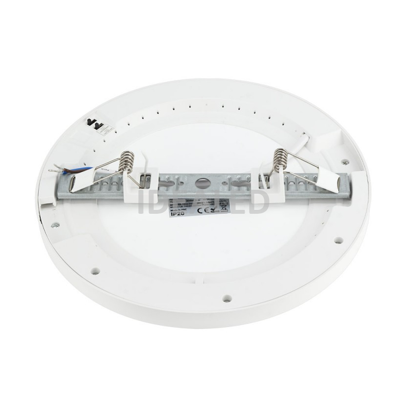 Multifunkční kruhový LED mini panel, bílý rám. Přepínatelný výkon 10W, 15W nebo 18W. Přepínatelná barva světla 3000K, 4000K nebo 6000K. Vestavná nebo přisazená instalace. Tenký design. Max. světelný tok 1800 lm. Světelná účinnost 100 lm/W.