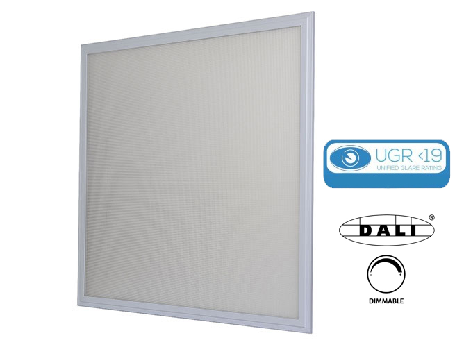 LED stmívatelný panel 600x600 s nízkým indexem oslnění UGR<19, bílý rám, výkon 36W, světelný tok 4320 lm, barva světla 4000K. Stmívatelný DALI driver. Krytí panelu IP20. Instalace do kazetových podhledů. S dokoupeným příslušenstvím lze panely zavěsit na lanka, vsadit do podhledu, případně instalovat jako přisazené svítidlo. Životnost 50.000 hodin. Záruka 5 let.
