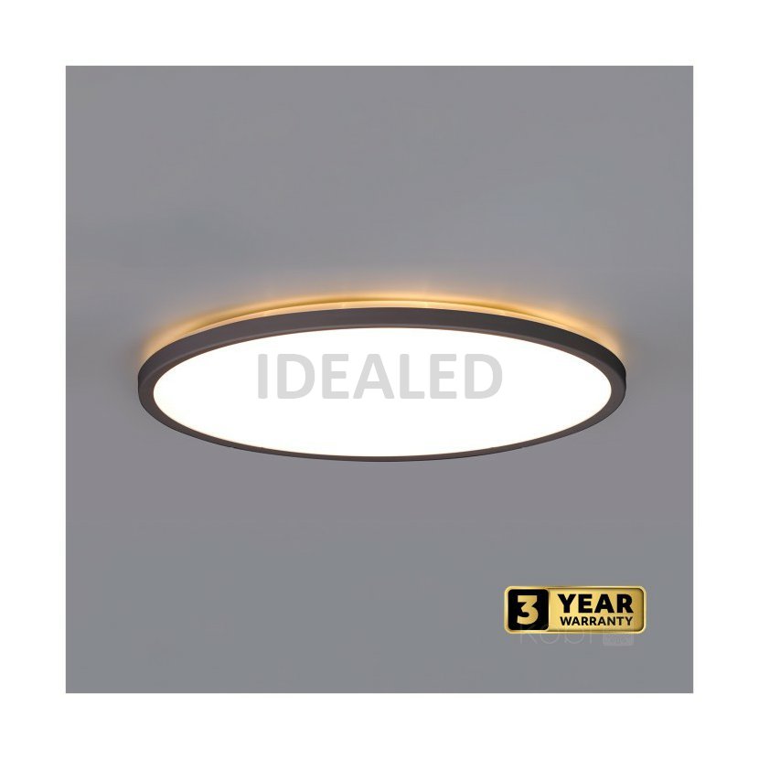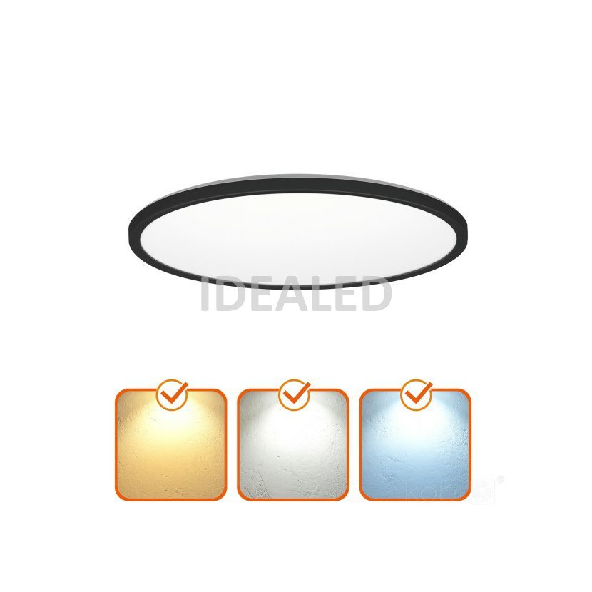 Přisazený LED mini panel, tvar kruh, černý rám. Tenký design. Výkon 18W, světelný tok 1710 lm. Barva světla přepínatelná na zadní straně svítidla 3000K-4000K-6000K. Rozměry D300x28 mm. Krytí panelu IP54, vhodný pro instalaci do koupelny. Přisazená instalace. Záruka 3 roky.