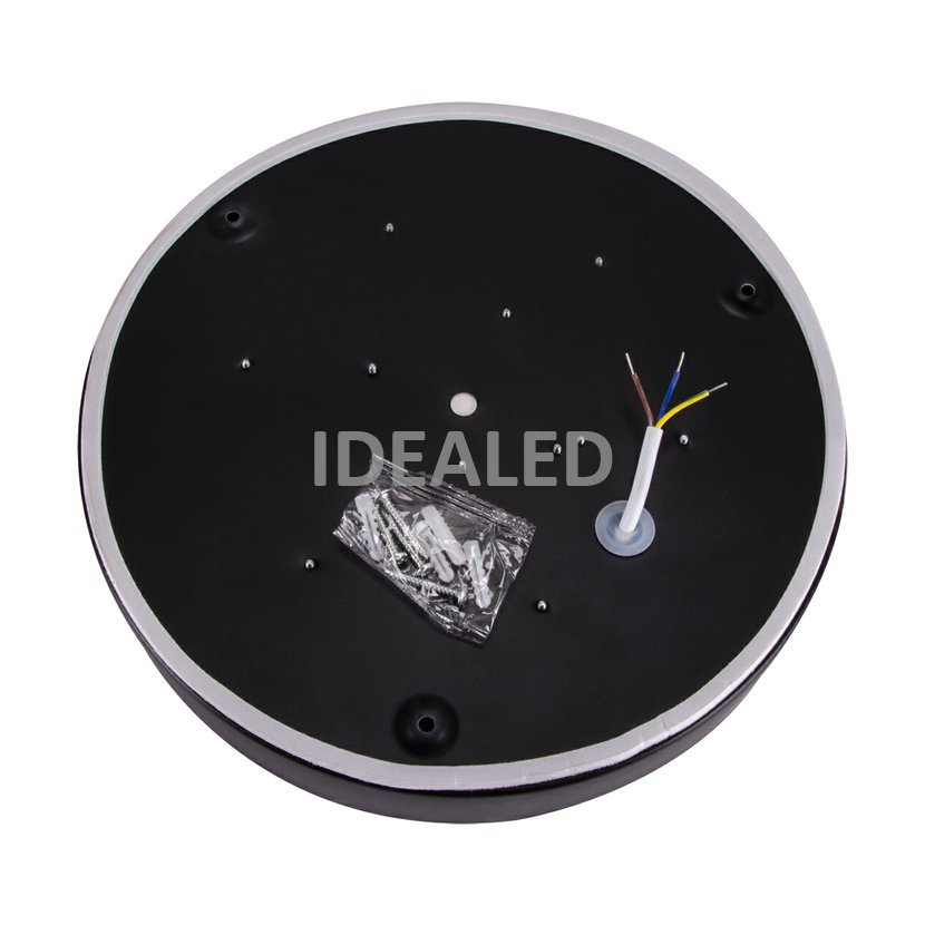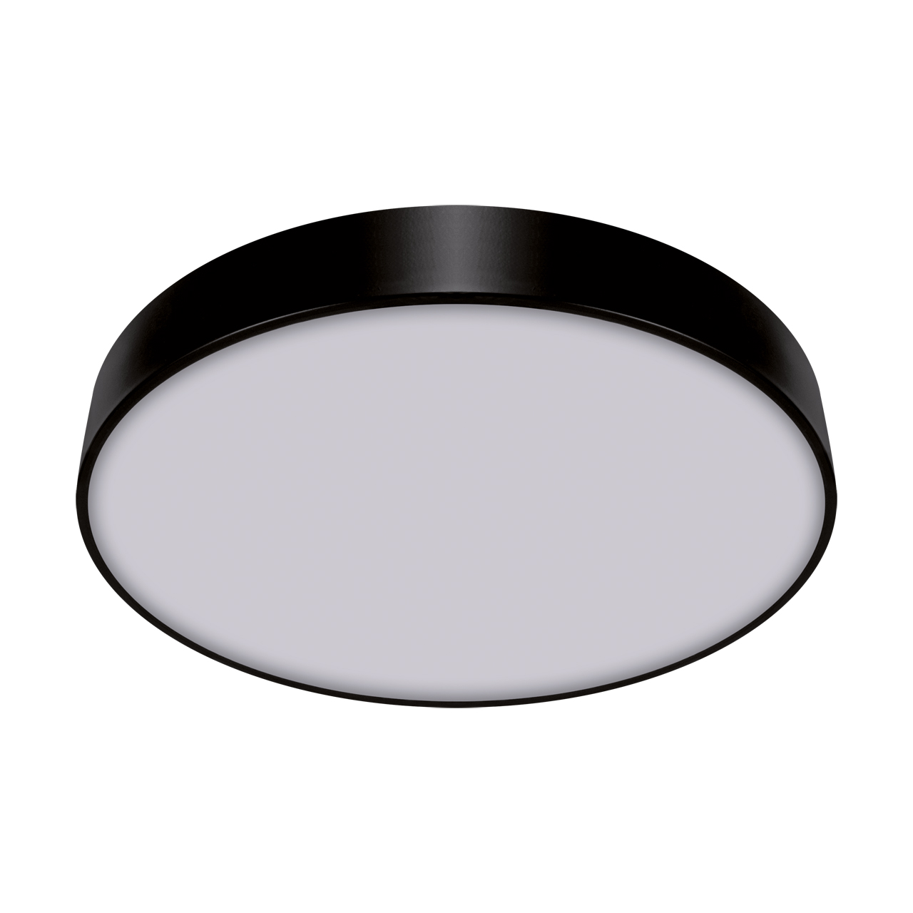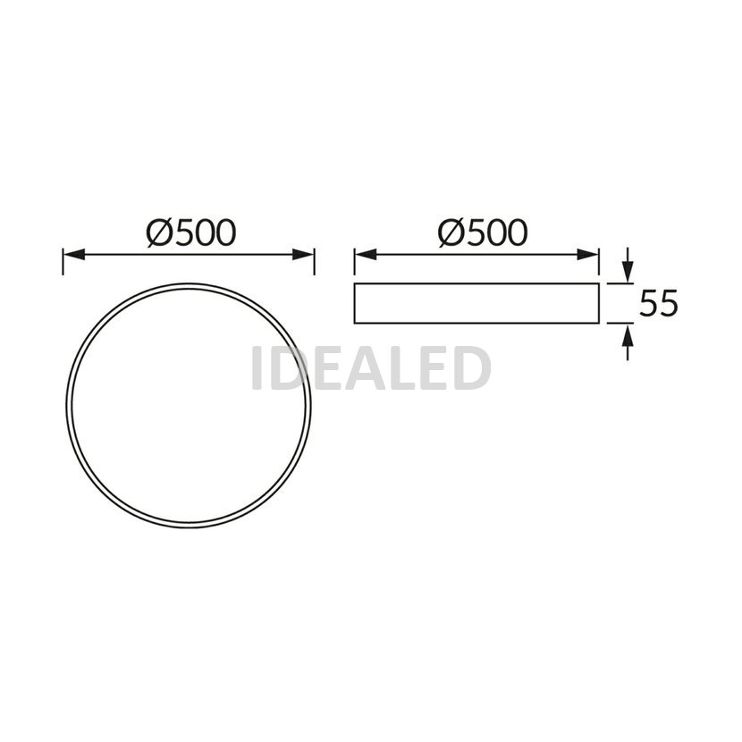 LED přisazené kruhové svítidlo o rozměru D500x55 mm. Výkon 48W, barva světla 4000K neutrální bílá, světelný tok 5300 lm. Rámeček svítidla černý. Krytí IP20. Nestmívatelné. Materiál ocel+polykarbonát.