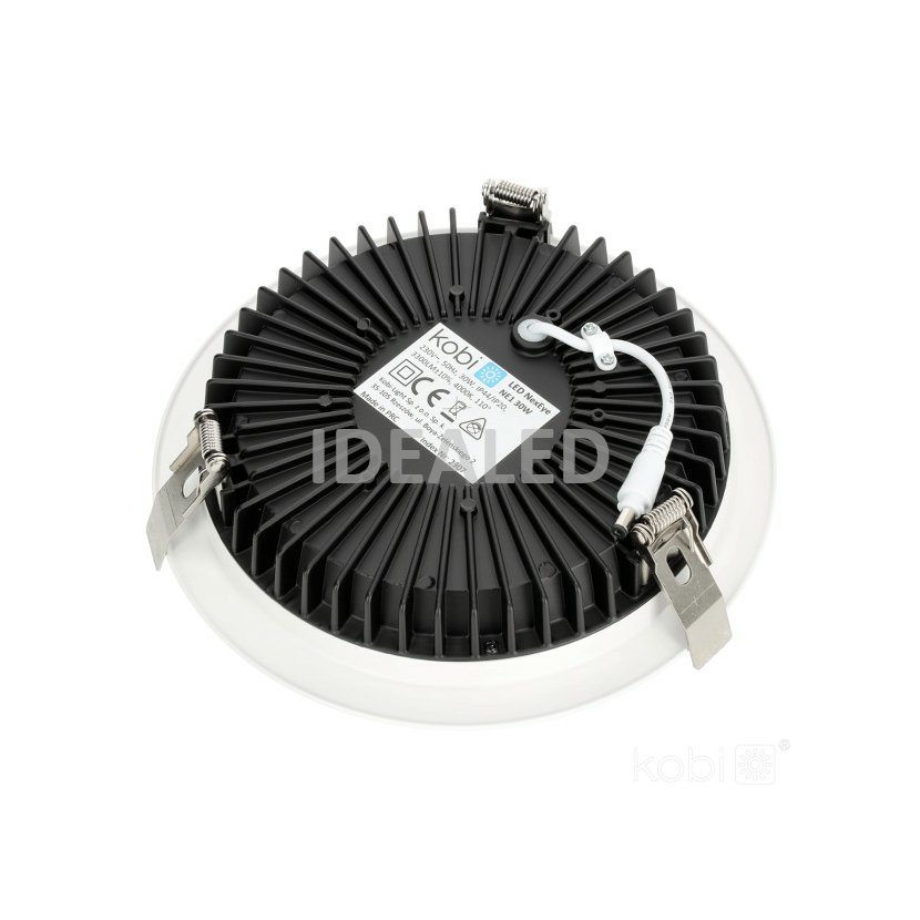 Vestavné LED svítidlo s krytím IP44, tvar kruh, bílý rám. Výkon 30W, světelný tok 3300 lm. Barva světla 4000K. Rozměry D228x51 mm. Rozměr instalačního otvoru D210 mm. Krytí optické části IP44, vhodný pro instalaci do koupelny. Instalace do SDK podhledu. Záruka 5 let.