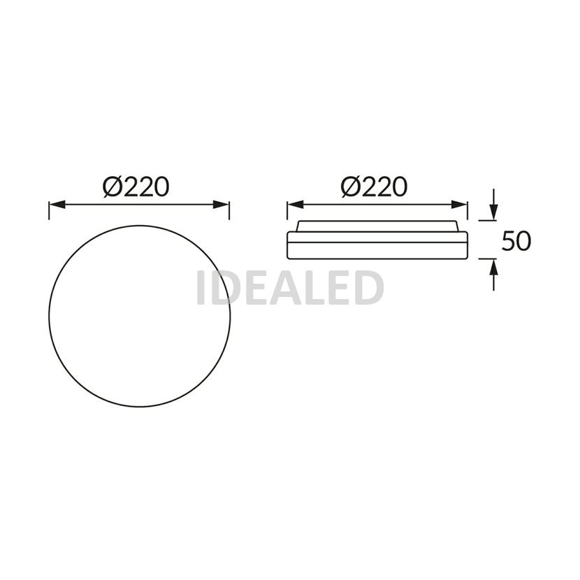LED přisazené kruhové stropní svítidlo o rozměru D220x50 mm. Výkon 18W, barva světla 4000K neutrální bílá. Světelný tok 1600 lm. Bílý rámeček svítidla. Krytí IP55. Nestmívatelné. Třída ochrany II.