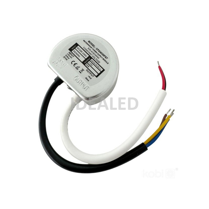 Napájecí zdroj pro LED pásky, materiál plast, krytí IP67. Kulaté, vhodné pro instalaci do instalační krabice o průměru 60 mm. Výkon 30W, výstupní napětí 12V DC, výstupní proud 2,5A. Rozměry Ø50x22 mm.…