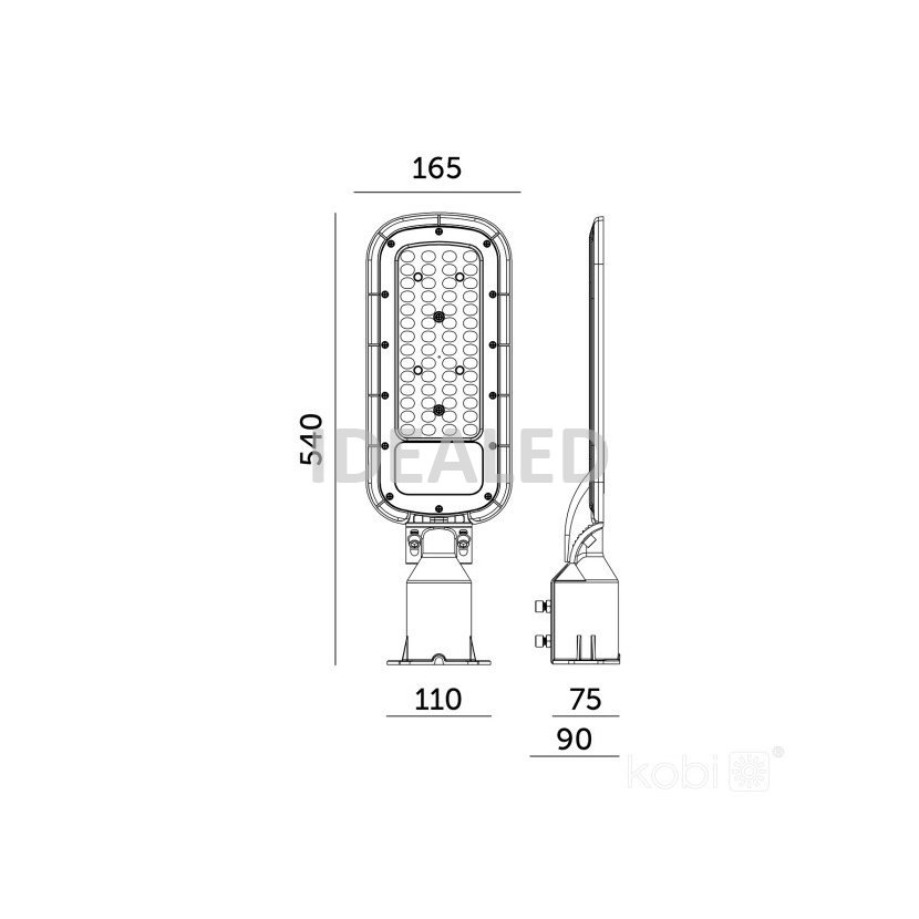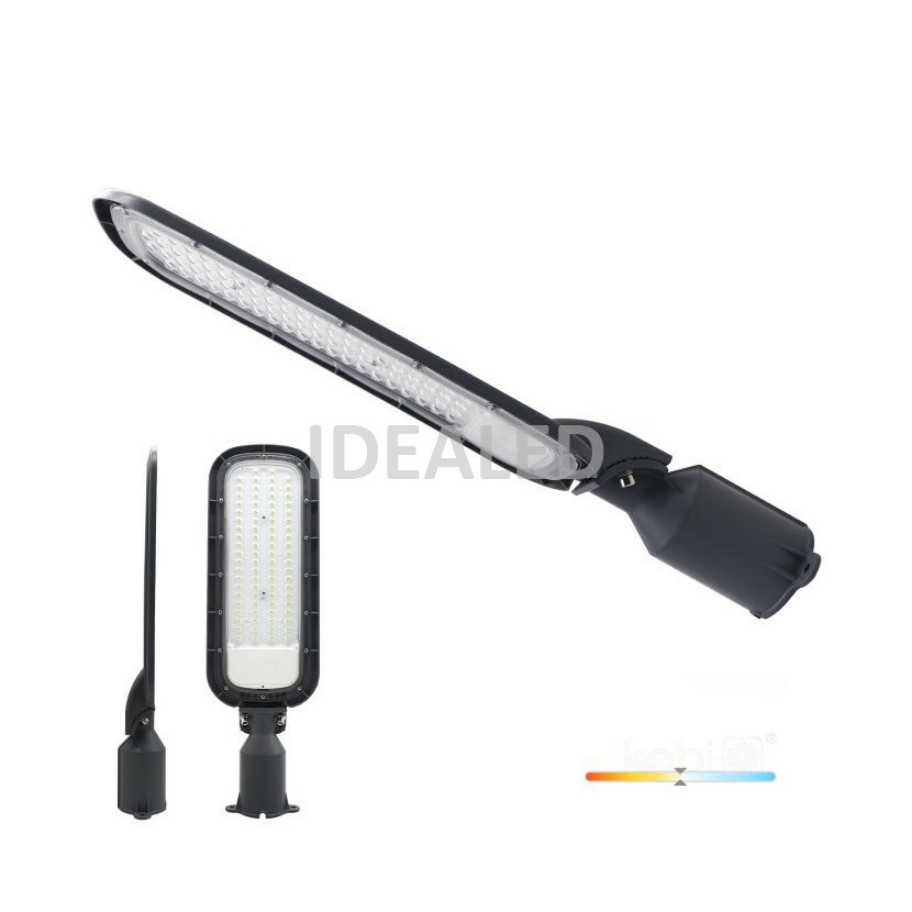 Kvalitní a levné LED pouliční svítidlo s krytím IP65, výkon 150W. Světelná účinnost 100 lm/W. Světelný tok 15000 lm, barva světla 4000K. Záruka 3 roky. Životnost světelného zdroje L80 min. 36.000 hodin. Barevné provedení šedé. Úhel světla 130°x75°. Teplota prostředí: -40°C – +50°C. Svítidlo je vybavené nastavitelným kloubem - instalace na výložník, na stožár nebo na zeď.
