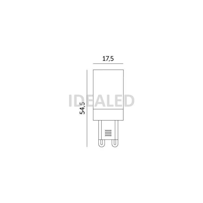 LED žárovka s paticí G9. Výkon 4W, barva světla 3000K, světelný tok 380 lm, úhel světla 330°. Napětí 230V AC. Rozměry D17,5xH54,5mm