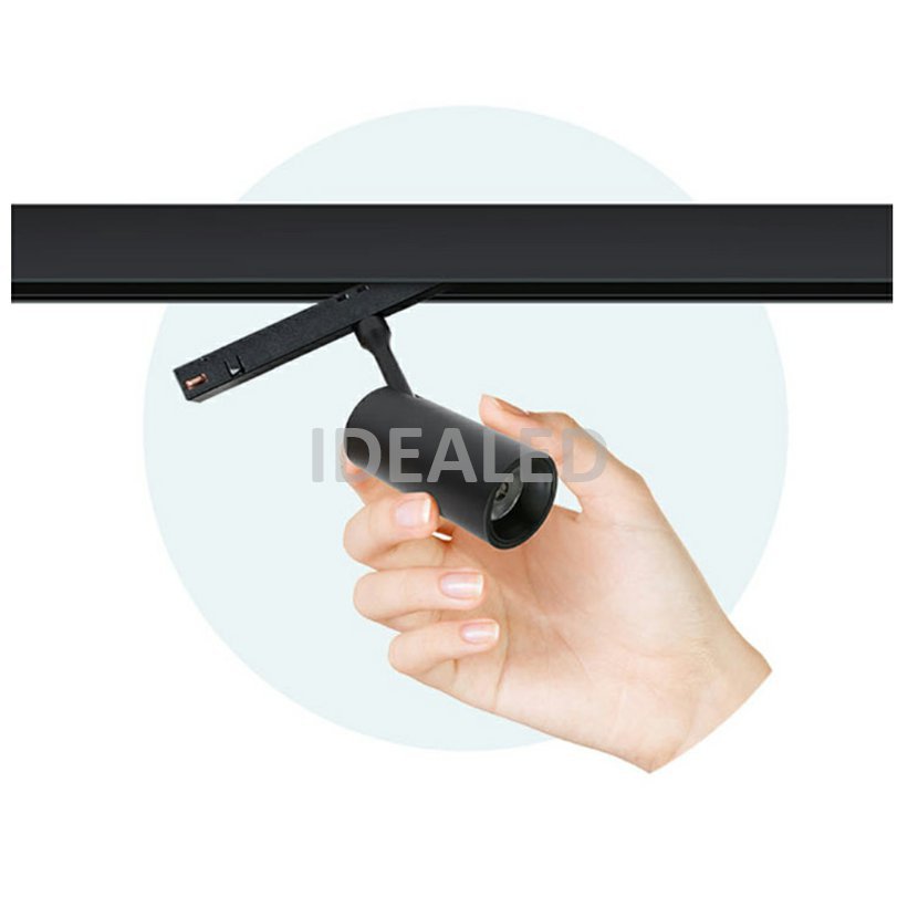 Přisazená magnetická lišta/kolejnice, barva černá, délka 1 metr. Bezpečné napájení 48V DC. Určena pro magnetická svítidla. Jednoduchá instalace svítidel do lišty. Možnost zavěšení lišty na lanka nebo s příslušenstvím lze vsadit do SDK.