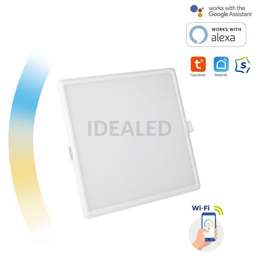 Chytré bezdrátová vestavné LED svítidlo, WiFi 2.4GHz, výkon 22W, světelný tok 2000 lm, tvar čtverec. Teplota světla nastavitelná 3000K až 6000K, nastavitelná intenzita osvětlení, to vše pomocí aplikace Tuya Smart, Smart Life nebo Spectrum Smart, které jsou volně dostupné pro Android a iOS, podpora hlasových asistentů. Svítidla jsou vyrobena z kvalitních, nežloutnoucích materiálů PMMA.
